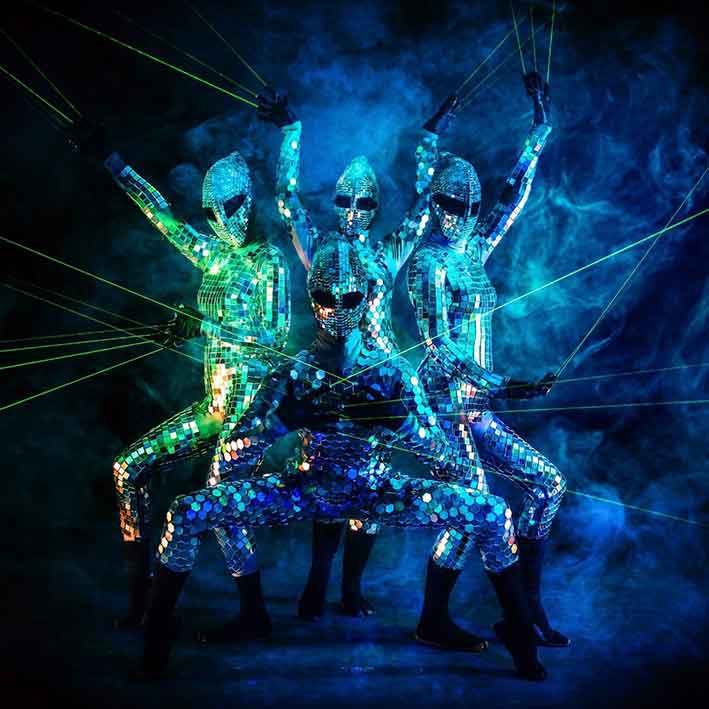 Our dancers incorporate lasers into their costumes, infusing a touch of mystery and sci-fi into their performance.
