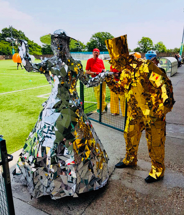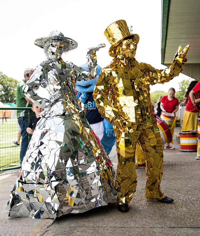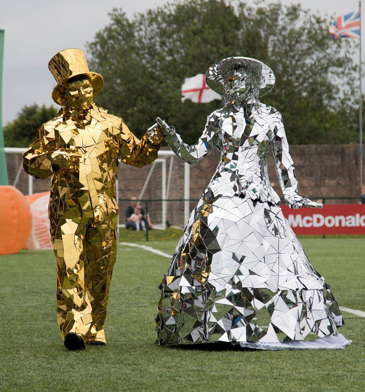Perfect for complementing any color scheme, this roaming entertainment at its finest as our Mirror People UK refract light and bring a sparkling touch to every event with their dazzling costumes and lovable personalities.