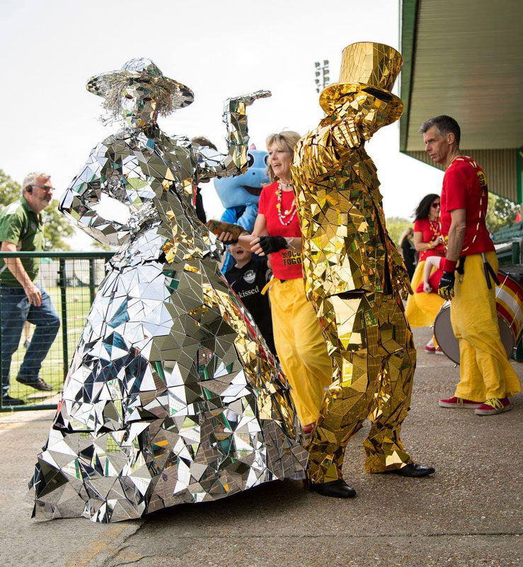 Available in gold and silver, our characters can be booked as a duo or as solo walkabout performers. Their elegant presence makes our Lord and Lady mirror men and women captivating to watch and impossible to ignore.
