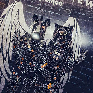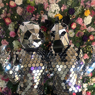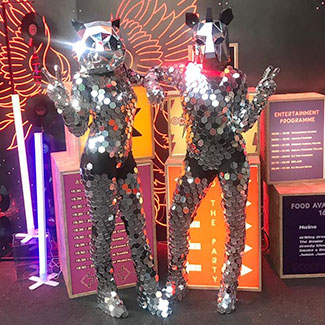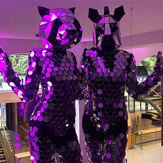 Mesmerizing animal costumes adorned with mirror embellishments captivate the light and radiate brilliantly!