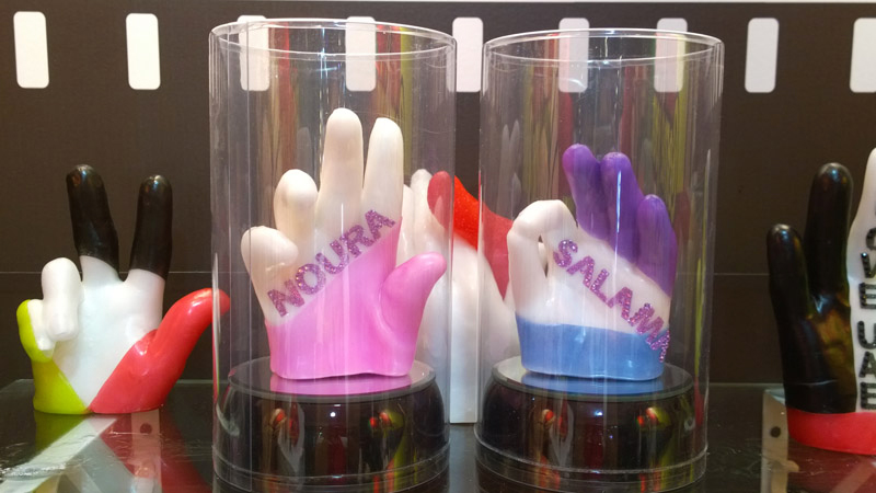 Choose a hand, dip it in the wax, cool it in water, then carefully remove the mold and select your decoration!