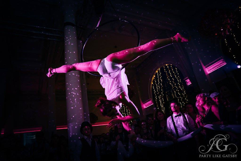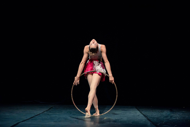 Impress your event's guests with her versatile talents, including hula hooping, aerial acrobatics, contortion, or handstand balance!