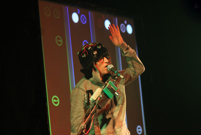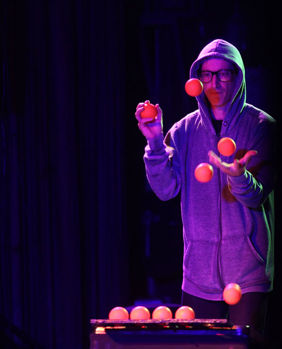 Our Multimedia Music Performer is a musical and technological genius who has spent years developing innovative, cutting-edge technology to create a unique multimedia show accessible to all audiences. The result is a spectacular and groundbreaking fusion of live music, technology, audio-visual manipulation, and circus entertainment.