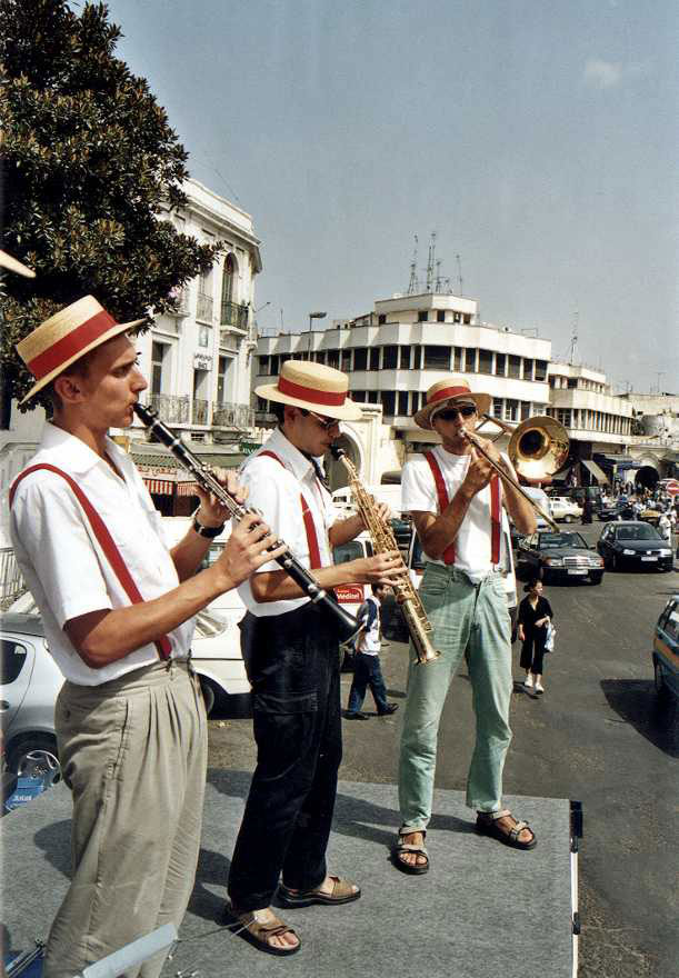 The band can perform as a traditional roaming ensemble in the Dixieland style, or deliver a classic jazz concert experience.
