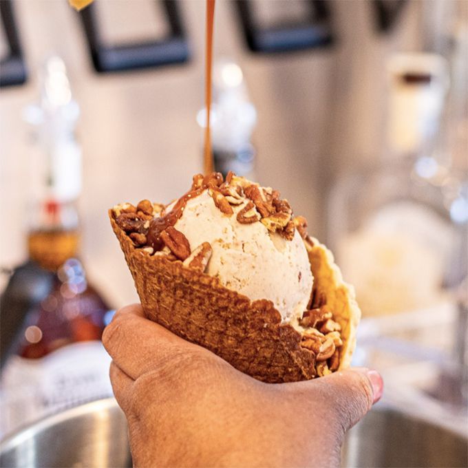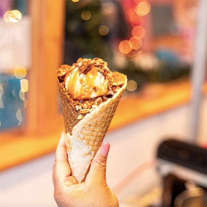 Guests watch their ice cream being made instantly with liquid nitrogen, creating dramatic smoke effects and a truly memorable experience