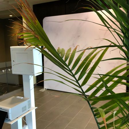 This twist on a standard photo booth is suitable for any event! This open photo booth barely takes up any space thanks to its small footprint