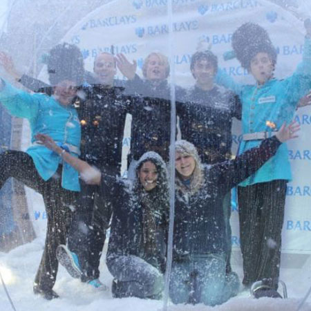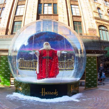 Featured on the famous Dragon’s Den and booked by high-profile clients including Disney, Burberry, the BBC, and Apple, our extremely popular SnowGlobe has taken the world by storm. Whether you are looking for a magical centrepiece, exceptional Christmas party entertainment, or a glittering ambient event prop, this globe will exceed all of your expectations. Turning any venue into a true winter wonderland, our Christmas-themed globe prop creates a sense of wonder in children and adults alike. Speak to our team at Scarlett Entertainment UK today to learn more about booking the Original Giant SnowGlobe for your event.