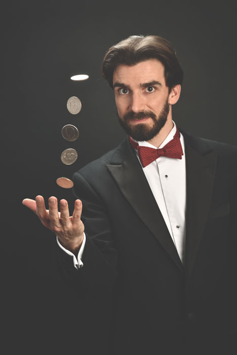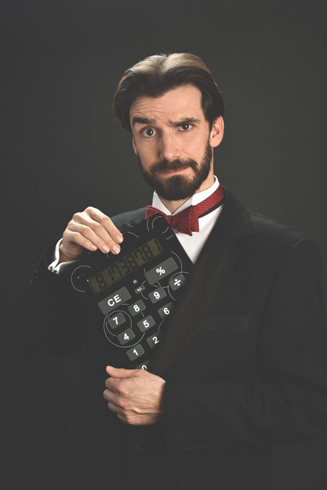 Our top-quality magician is renowned for his offbeat, eccentric performances, both as a close-up magician and in his exciting and highly engaging magic stage shows. His close-up magic routines revolve around the concept of math magic, using nothing but a calculator and a notepad to astonish audiences in a unique and fast-paced performance. His larger stage shows maintain the same level of fun, audience interaction, and jaw-dropping illusions in a series of shows customized for any audience size.