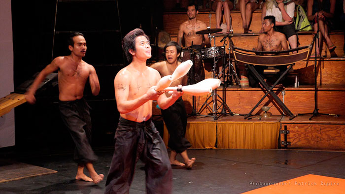 The Phare Circus Club Juggling's acrobatic club jugglers are part of Phare The Cambodian Circus, a school in Cambodia founded for less advantaged local youth. This non-profit organization offers support, education, and artistic training, and it is these Cambodian circus performers who take part in the Phare Circus Club Juggling.