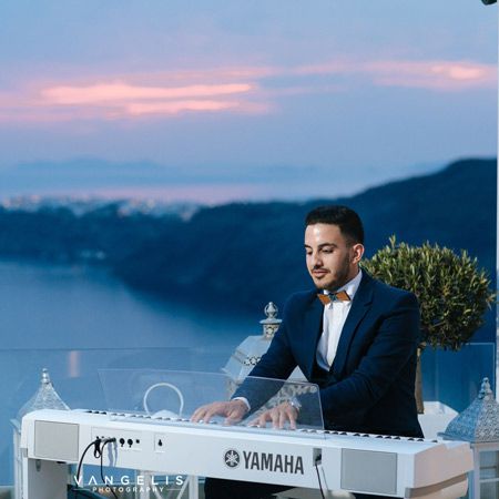 Our pianist can arrange his keyboard for either indoor or outdoor settings. Additionally, a classic white piano is available to add an extra touch of sophistication.