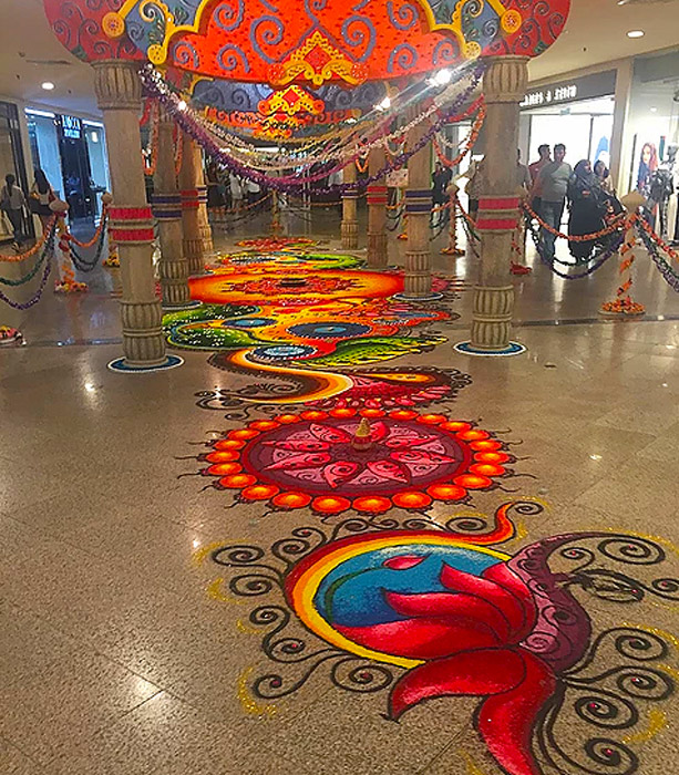This seasoned Rangoli artist has designed both traditional and contemporary rangoli patterns for local and international clients. Some notable commissions include projects for Ascot and American Express. He holds a Guinness World Record for the largest rangoli work ever created in South East Asia and has consecutively won first place in fifteen prestigious international Rangoli competitions.