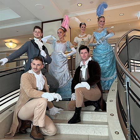 These Regency dancers will captivate audiences with their sophisticated choreographies or can engage and interact with your guests, creating a truly immersive experience.