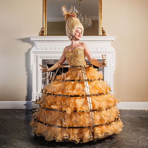 Your event will commence with an immersive experience as attendees are welcomed by our roaming characters in hand-crafted, authentic Regency and Renaissance costumes. Our roaming characters engage with historically accurate lines and anecdotes, while our champagne dress performer adds a touch of luxury, elegantly serving champagne to guests and elevating the sophisticated ambiance. Our Aerialist performs ambient sets throughout the evening, with an option to serve Champagne to your guests, enhancing the atmosphere with her mesmerizing performances.