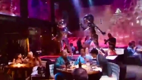 They offer mix-and-mingle entertainment or choreographed stage performances, featuring a variety of costumes paired with the iconic disco ball head.