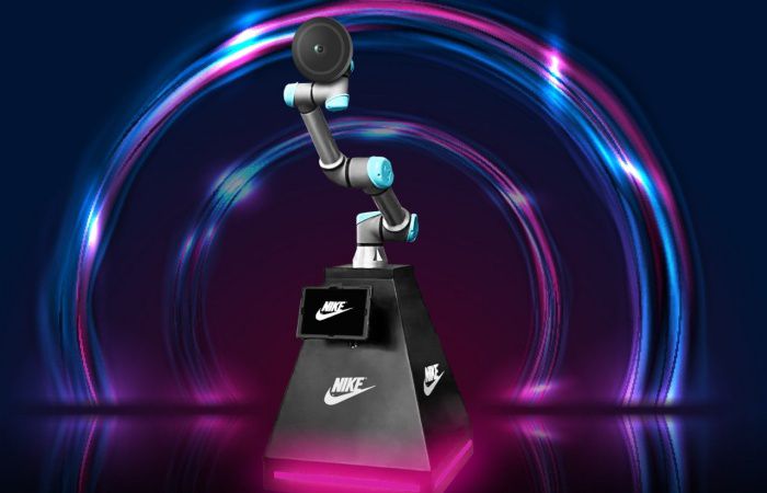Experience the future of event technology with a robotic arm that captures high-resolution slow-motion videos, perfect for creating viral social media content.