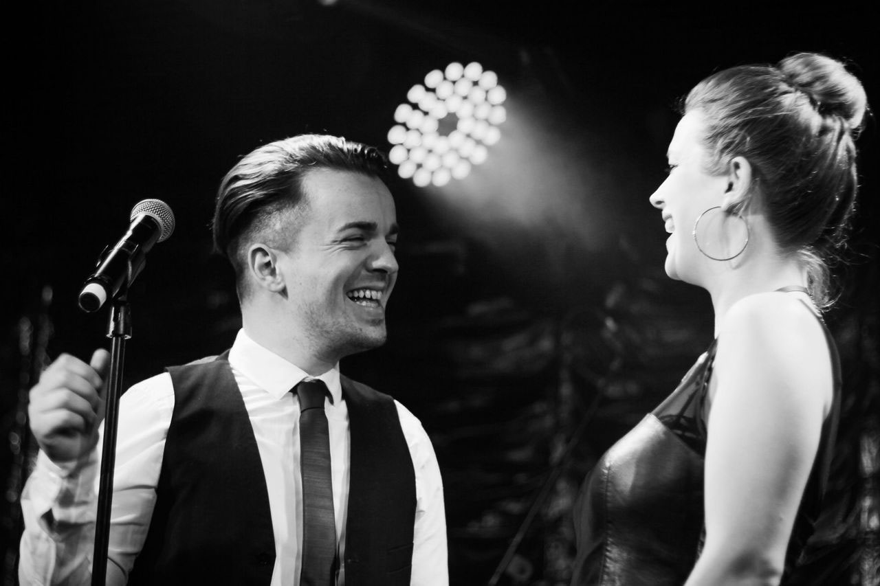 The band features two lead singers, both male and female, accompanied by an impressive horn section and a percussionist, all set to make your event unforgettable!
