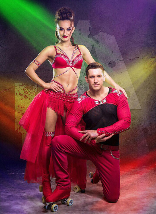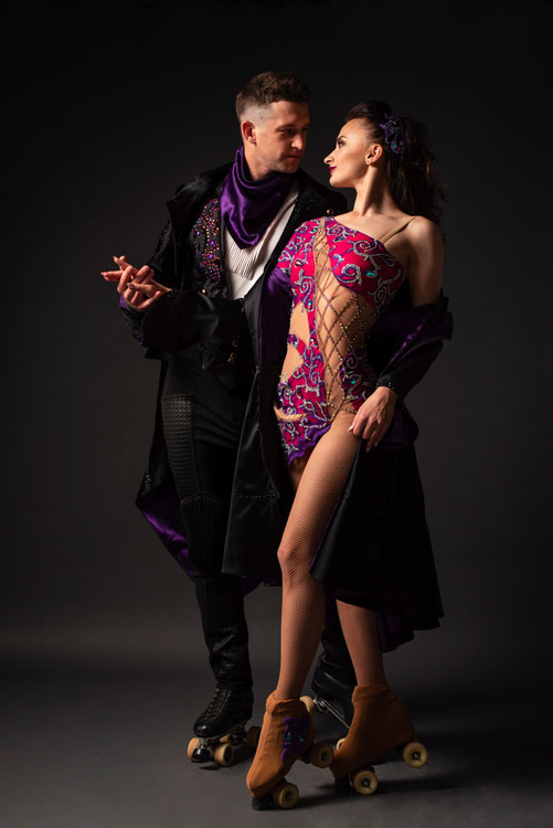 A high-energy male and female roller skating duo delivering jaw-dropping, adrenaline-fueled entertainment that leaves audiences on the edge of their seats