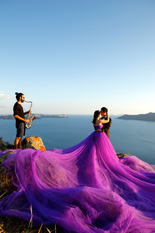 Create the ideal atmosphere for your wedding or special event with the instrumental saxophone performance by this talented Santorini Sax player.