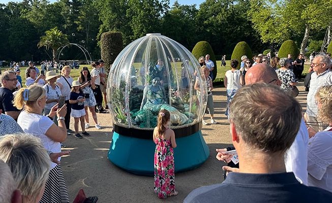 Provide your guests with a unique and captivating roaming entertainment experience featuring our stunning interactive sea-themed sphere. The enchanting Interactive Roaming Sea Globe is a one-of-a-kind giant globe with a beautiful mermaid inside, resembling a life-size fishbowl complete with dancing seaweed and deep-sea creatures.