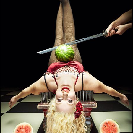 This performance showcases a range of astounding stunts, including sword swallowing, pierced weight lifting, a human chopping board, and a concrete block smash.