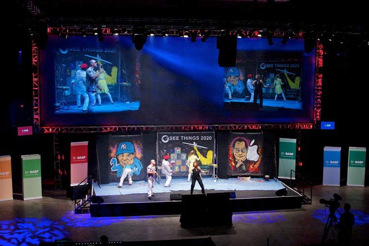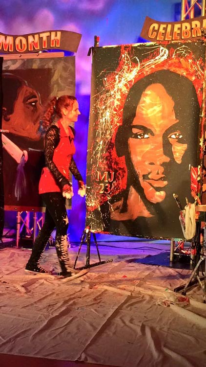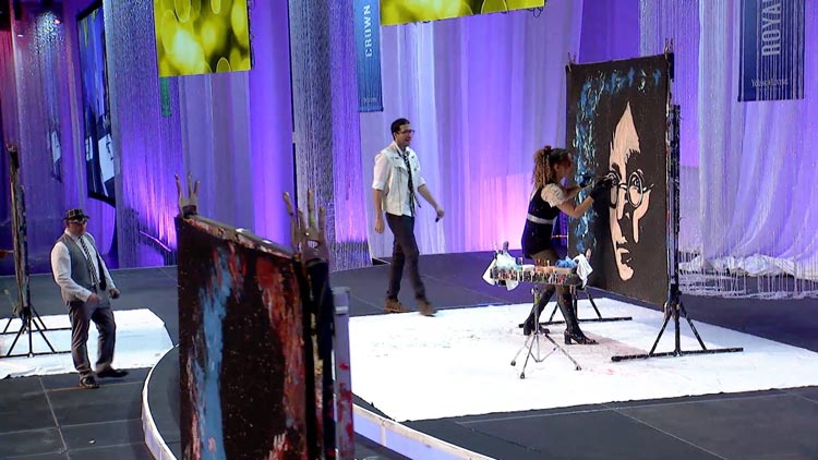 - Gallery Creation - Inviting the audience to witness three high-energy painters create three giant portraits live, transforming the stage into an incredible art gallery