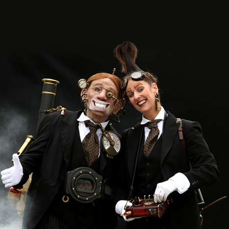 This roaming entertainment is ideal for festivals, community celebrations, outdoor events, trade shows, and steam punk events.