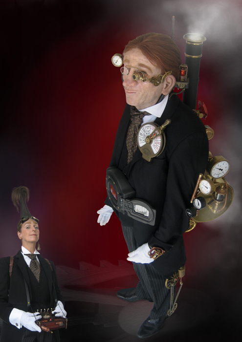 Resembling a creation from a Jules Verne novel, the Steam Powered Butler is a walkabout character dressed as a man-machine, accompanied by an engineer who operates him. This unique character moves around your event on a wheeled device, featuring various gimmicks within its interactive performance, making it an enjoyable experience for diverse audiences.