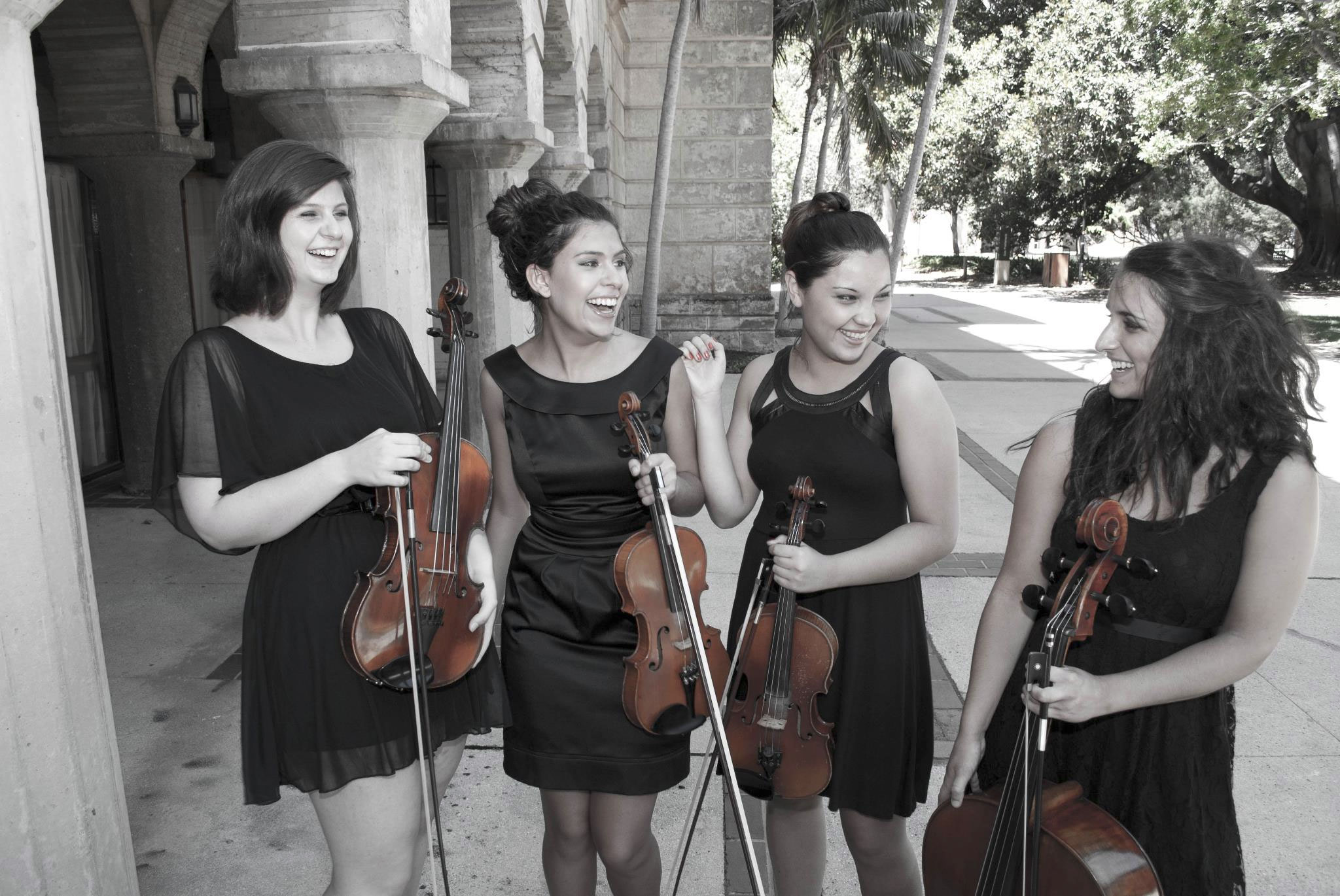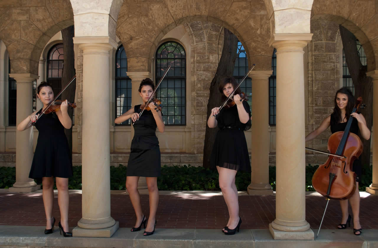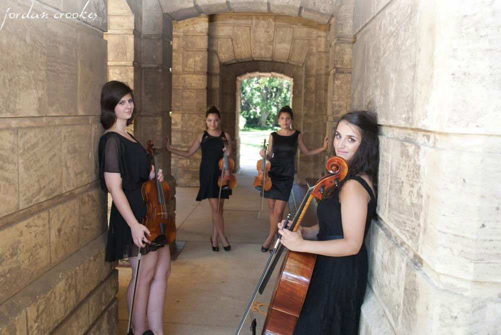 This elegant and unique student string quartet from Perth, Western Australia, features Sayana Barnes on Violin I, Sophia Hawes on Violin II, Rachel Hicks on Viola, and Cassie Mcleod on Cello. The quartet studies at the University of Western Australia and the WA Academy of Performing Arts.