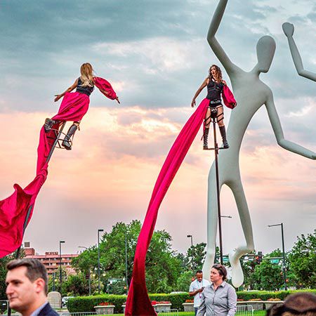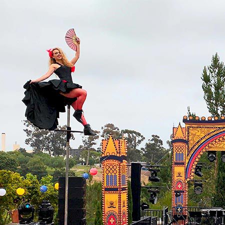 Our Colorado-based Sway-Pole cirque performers are available for festivals, corporate events, parties, and celebrations across the USA.