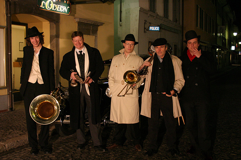 This Switzerland-based Jazz Band consists of Marc (clarinet and saxophone), Andrea (trombone), Theo (drums), Alain (tuba), and Pierre (banjo and guitar). The group draws its repertoire and influences from New Orleans Jazz, a period when prohibition was rampant in Chicago and New York.