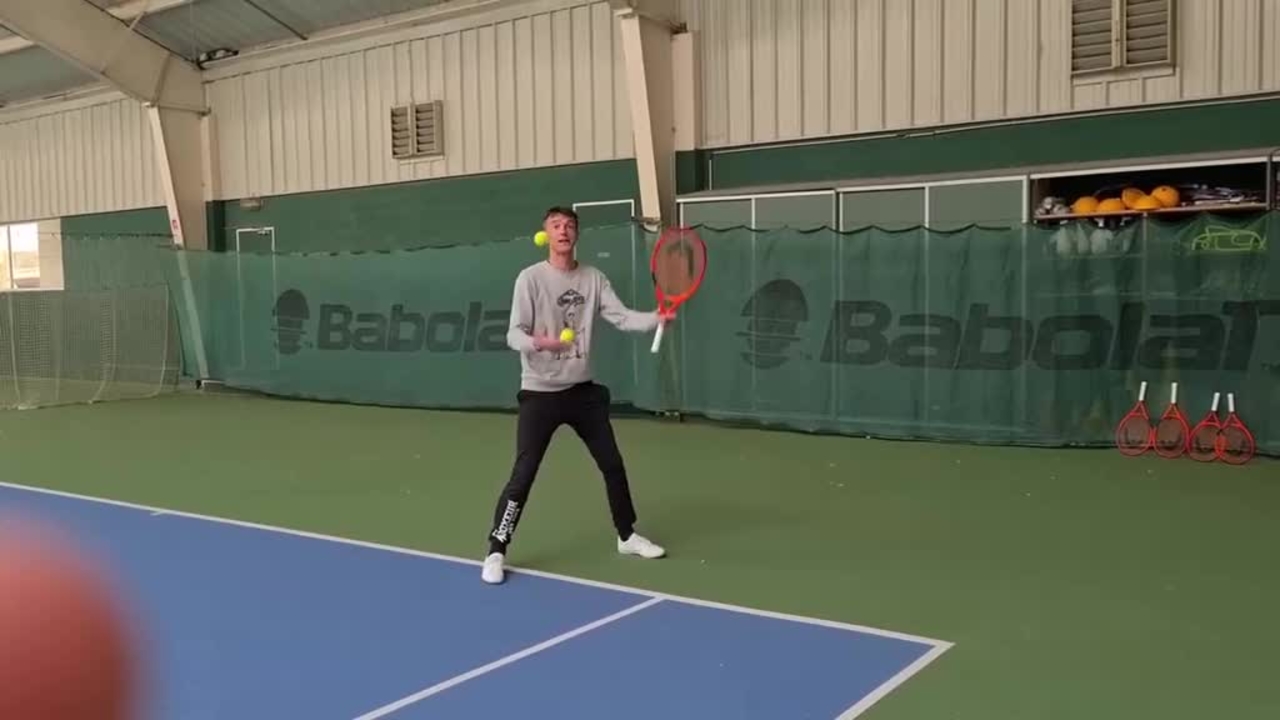 Guided by the renowned Italian juggler Italo Medini, Dominic has mastered the art, showcasing incredible agility and skill as he juggles tennis balls and racquets in rapid succession. For his grand finale, he effortlessly tosses up to 5 tennis racquets into the air and catches each one.
