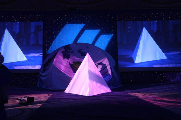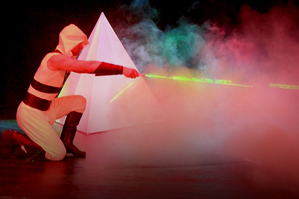 A towering pyramid combines laser highlights with powerful acrobatics, creating a modern show that opens up new avenues for product-focused presentations!