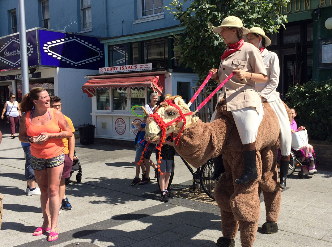 Choose our comical camel-riding duo, who will wander through your event dressed in safari gear with high riding boots, traditional African safari hats, and binoculars. Exploring and seeking adventures, our camel-themed comedy character animal walkabout is guaranteed to delight your guests.