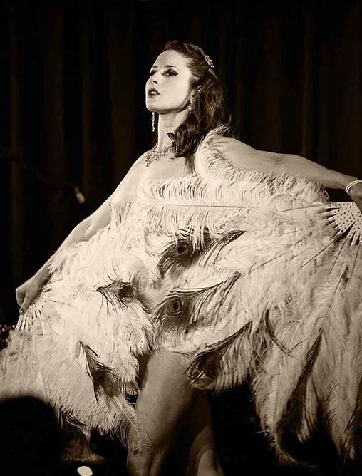 Our themed burlesque dancer will raise the temperature with her sensual feather fan dance, a performance delivered nude for authenticity, adaptable to different music and settings.