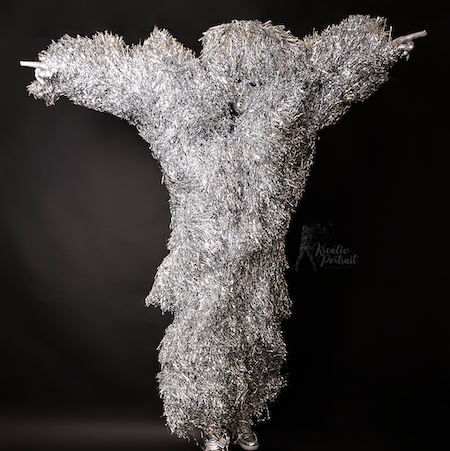 The Tinsel Man is a truly unique, show-stopping act adorned with thousands of strands of tinsel, creating a dazzling, shimmering effect