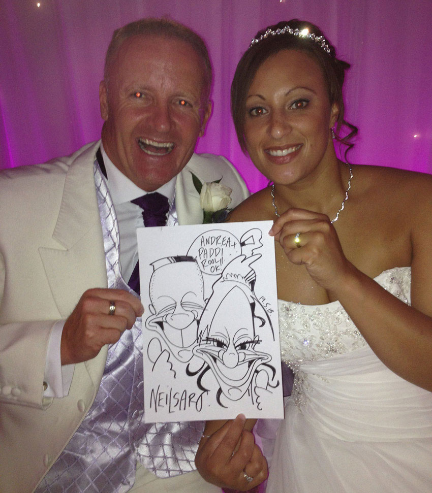 Invite Neil to your event to create 'on-the-spot' caricatures for your guests! These 'on-the-spot' caricatures serve as the perfect icebreaker, helping guests to unwind and ensure everyone has an enjoyable experience. Neil will interact with your guests and produce quick sketches in black ink, each taking only a few minutes to complete. Ideal for weddings, private parties, dinner dances, and corporate events.