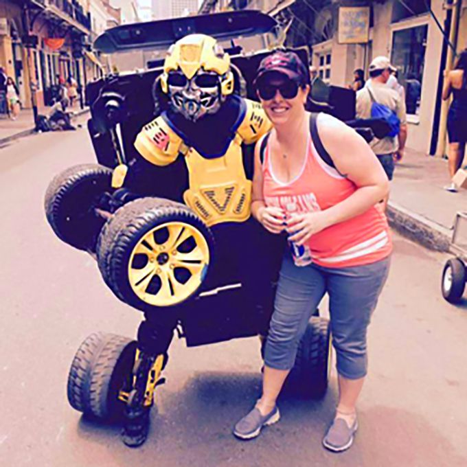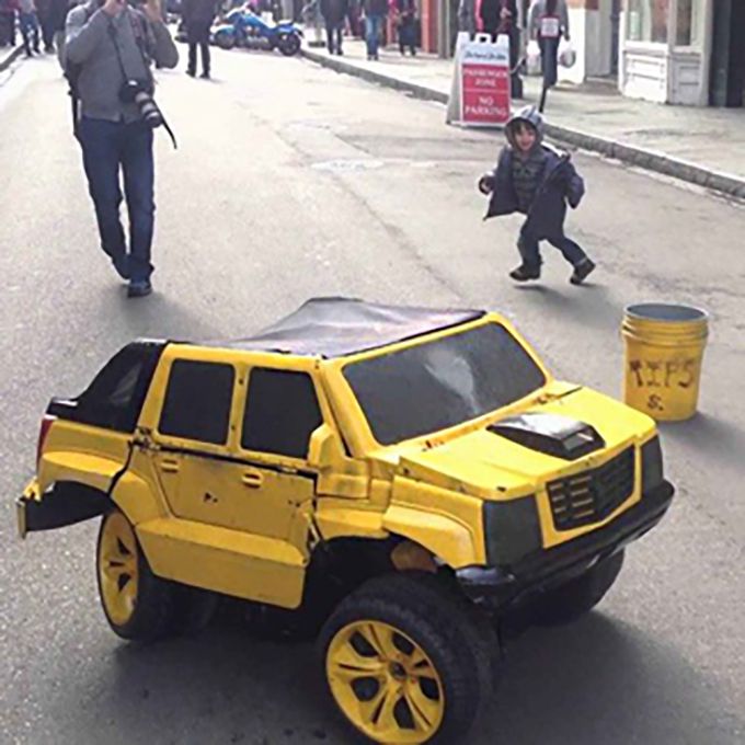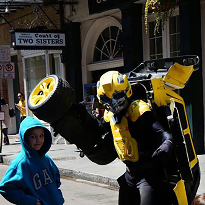 This street performer's transforming car costume is a fun surprise for guests and makes for highly Instagrammable moments
