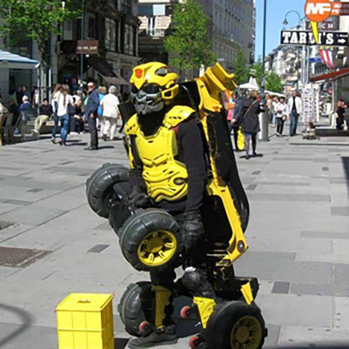 A popular street performer, this robot never fails to draw a crowd to marvel at his transformation
