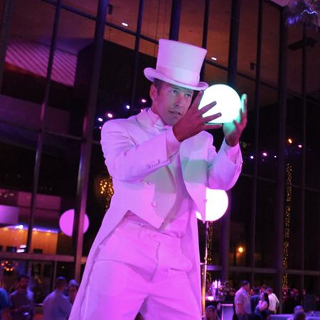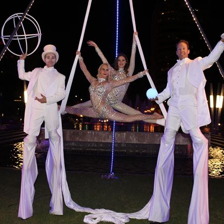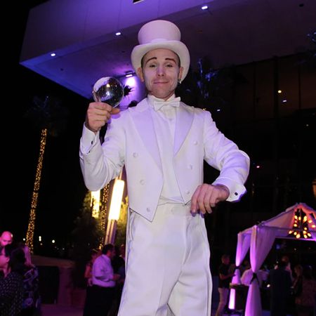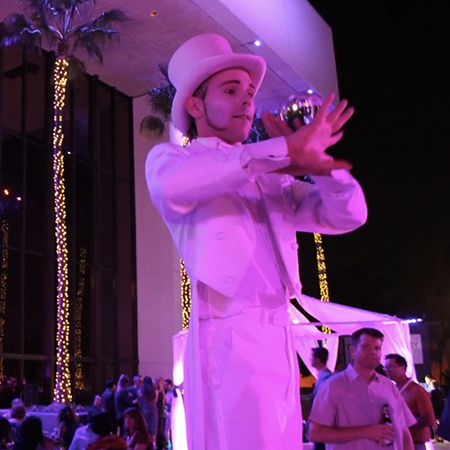 Infusing style and charm into your event, these stilt walkers, dressed in elegant white tuxedos, will interact with guests as they move throughout your venue.