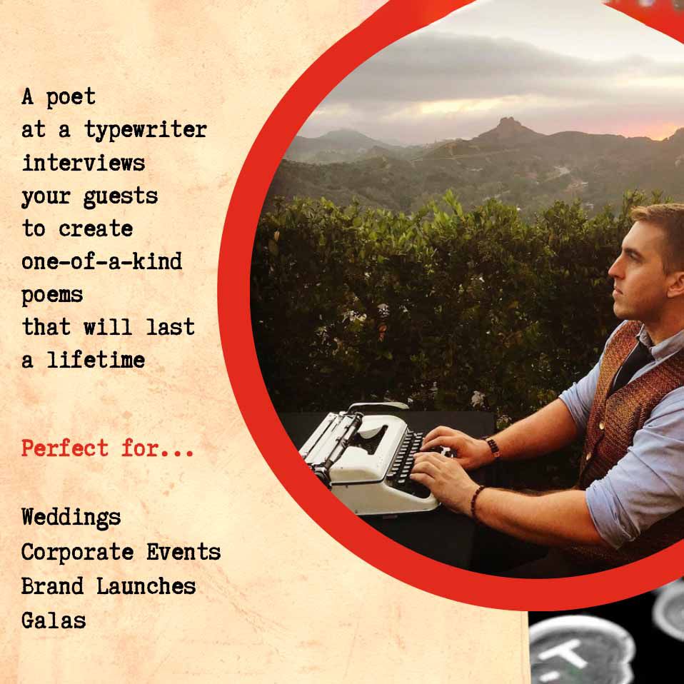 Based in Los Angeles, book our vintage typewriter poet for events throughout California and the USA.