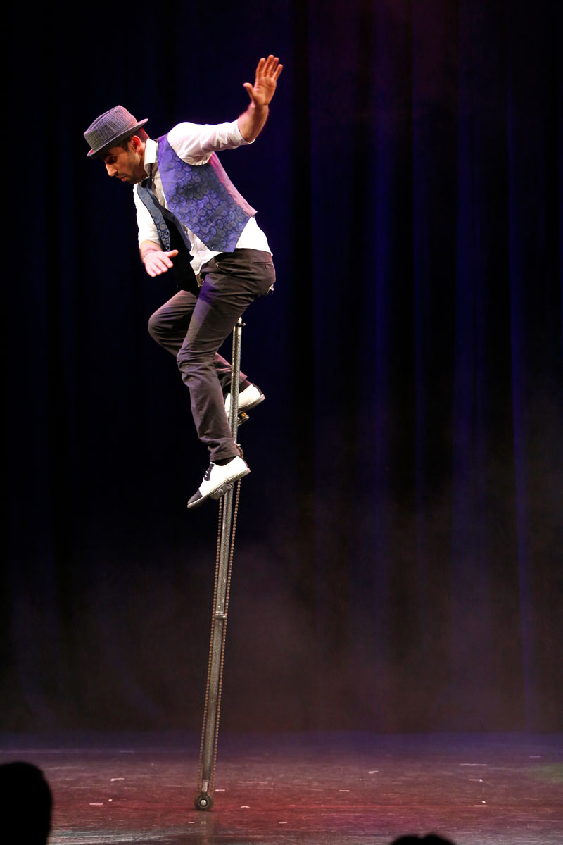 This exceptional performer showcases street unicycling, jump rope tricks, and juggling, concluding his act on a unicycle with an 82mm diameter wheel.