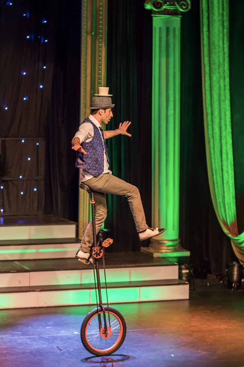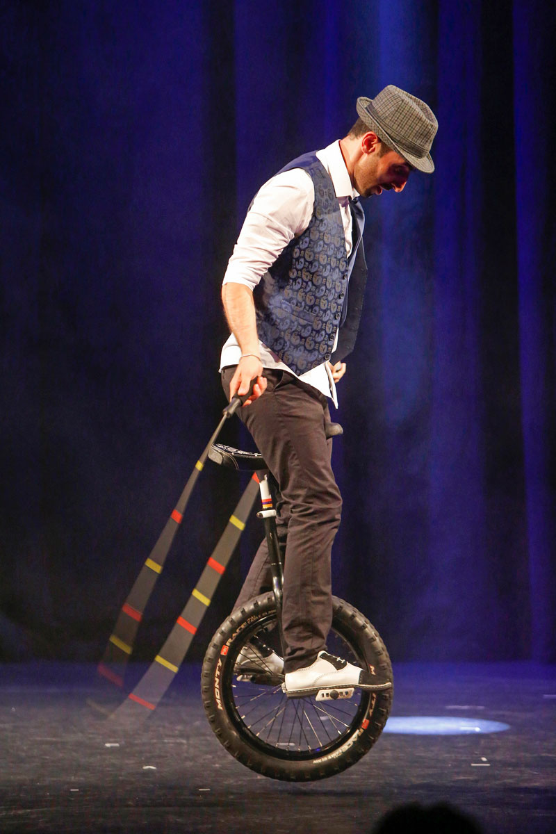 Two-time world record holder presenting a distinctive interactive performance featuring a blend of unicycles and tricks
