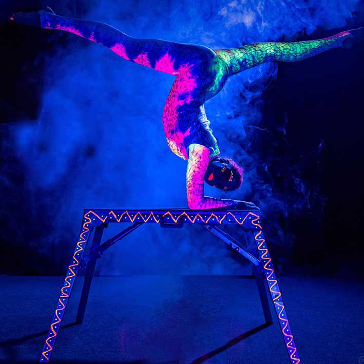 Located in New York, our exceptional UV circus artists are ready to perform throughout the USA.