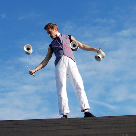 Inspired by the legends of vaudeville and circus, this classically trained entertainer is eager to customize shows for your event. Combining his talents as a diablo performer, juggler, and balancing artist into one spectacular act, anticipate a theatrical comedy routine where our clown juggles 3 clubs while balancing on an unstable stack of buckets and wood.