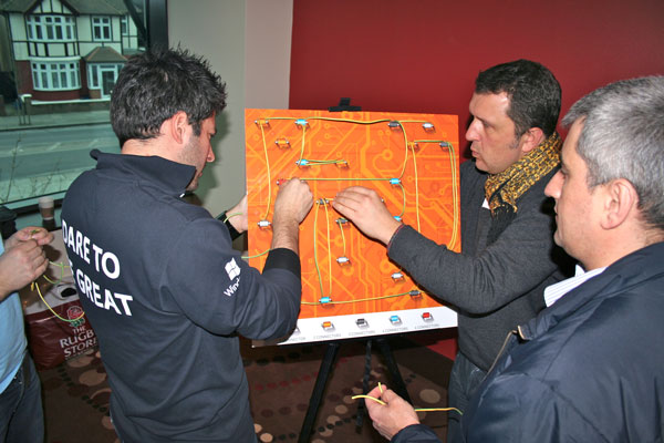 - The Harlequin - Teams are given several colored squares divided into quadrants. The goal is to align the squares so the colors match. Sounds simple but it's remarkably challenging!