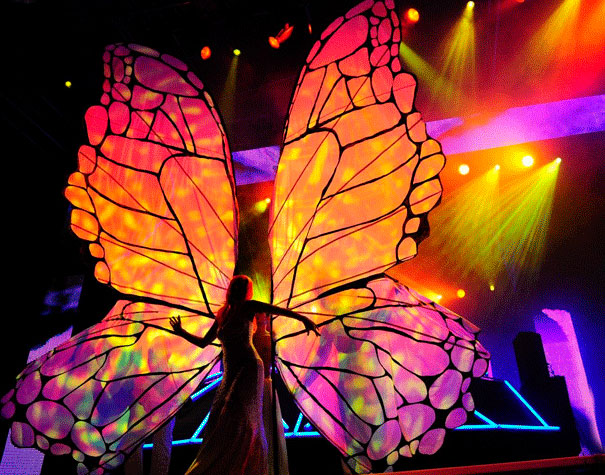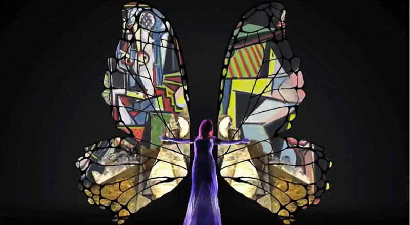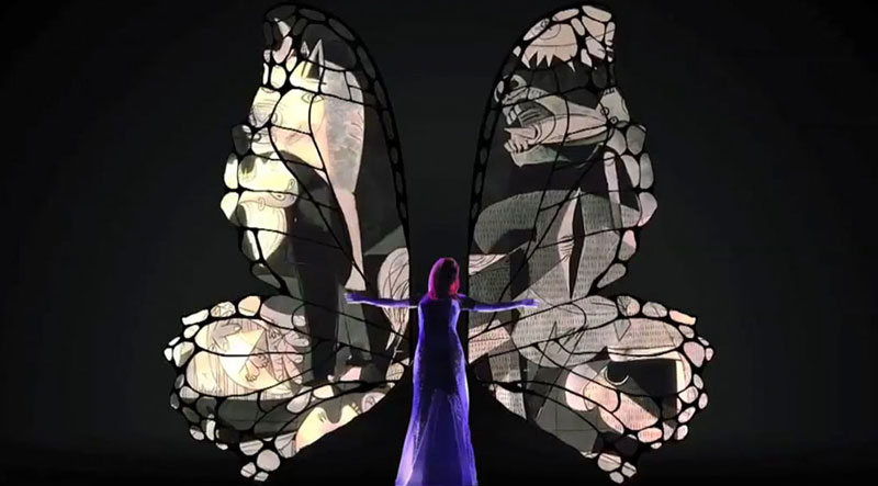 Utilizing cutting-edge video mapping technology, this breathtaking Video Mapping Butterfly turns a live opera singer into a human butterfly, creating an enchanting backdrop for various events and occasions.