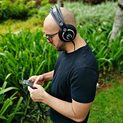 The show can be set up in the musician's studio with a green screen if desired. For a pre-recorded show, he can also film with his 16:9 4k camera and drone in an outdoor setting or a special location of your choosing.
