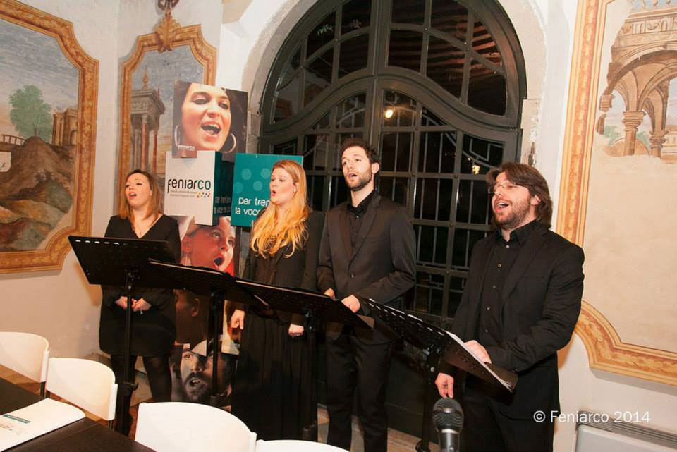 In high demand, the quartet frequently performs at church concerts, marriage ceremonies, musical gatherings, and conferences. They were also invited to the 40th International Polyphonic "City of Fano," garnering rave reviews from prominent conductors and composers in national and international musical circles.
