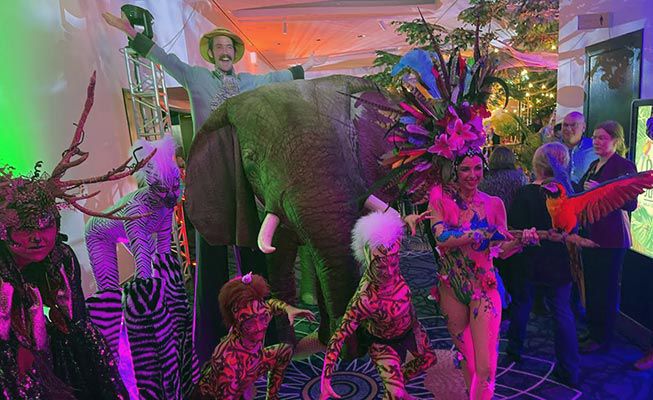 Our elephant offers captivating close-up interactions that delight guests of all ages, accompanied by a cheerful stilt walker of your choice.