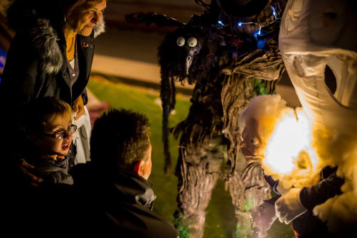 With bespoke ambient lighting seamlessly integrated into their costumes, this Norse fortune teller and her walkabout tree are best showcased at night when their lighting truly shines. However, they still look magnificent during the daytime.